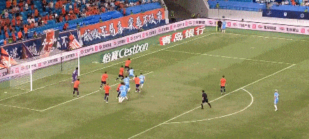 第39分钟,青岛海牛队也错失良机,兰克尔-泽近距离推射,被王国明反应迅速扑出。