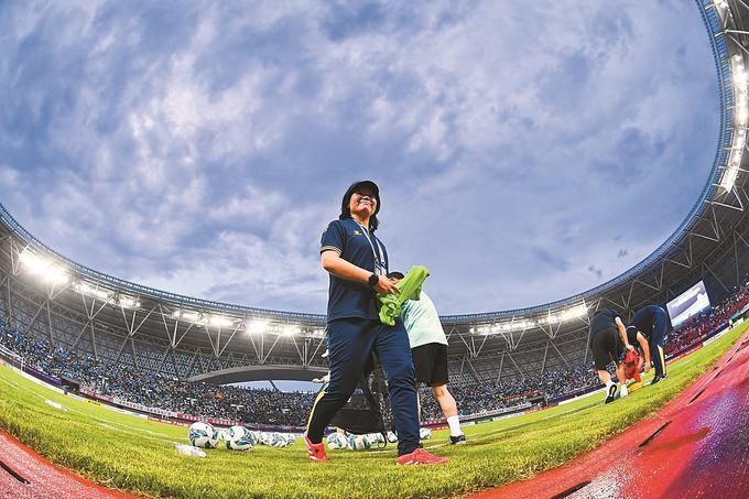 6月29日晚,在主场2万多名观众的欢呼声中,周高萍踏上“苏超”绿茵场。