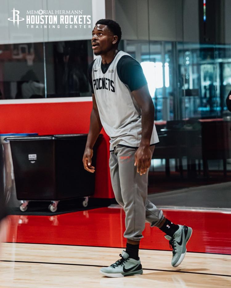 直播吧9月4日讯 今天,火箭官方更新社媒晒出了球员训练照,范弗里特、阿门、谢泼德在列。