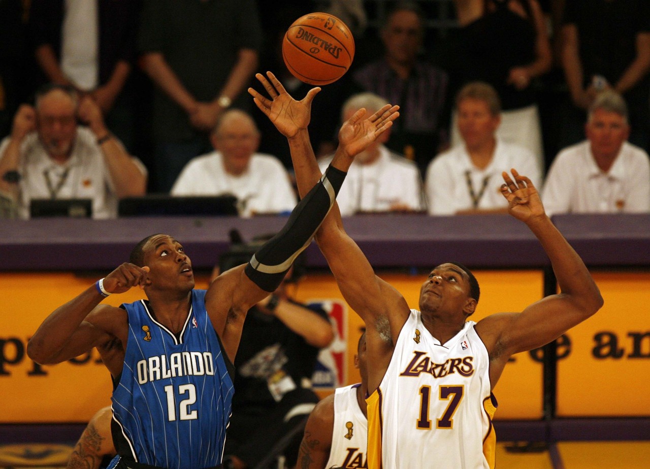 杨毅表示:“我觉得霍华德很棒,这没问题。因为他的移动速度和对抗能力,包括他的纵跳等等都很棒,那支奥兰多魔术的防守核心就是完全给霍华德打造的,因为有霍华德在内线,其他4个人可以去扑出去,然后把对方往里赶,霍华德在篮下是这个铁闸,这个没问题,但是徐静雨说霍华德是没有任何防守软肋的运动员,这个也不是。因为霍华德呢是这样,他作为一个5号位呢,其实他的绝对身高并没有那么高,真实身高就是差不多2米08这样一个身高,那么他的纵跳能力很强,但霍华德的下肢力量其实没有那么好。因为腿粗特别粗、下肢力量非常好的话,他的弹跳就没有那么出色,所以霍华德真正在顶防对方的纯五号位——比如攻击力强的大中锋的时候,无论是大姚还是那个时候的奥尼尔,包括在2009年总决赛里面对这个比他高一块的拜纳姆的时候,其实他在一防一防对方中锋的时候是有问题的,也是有软肋存在的。”