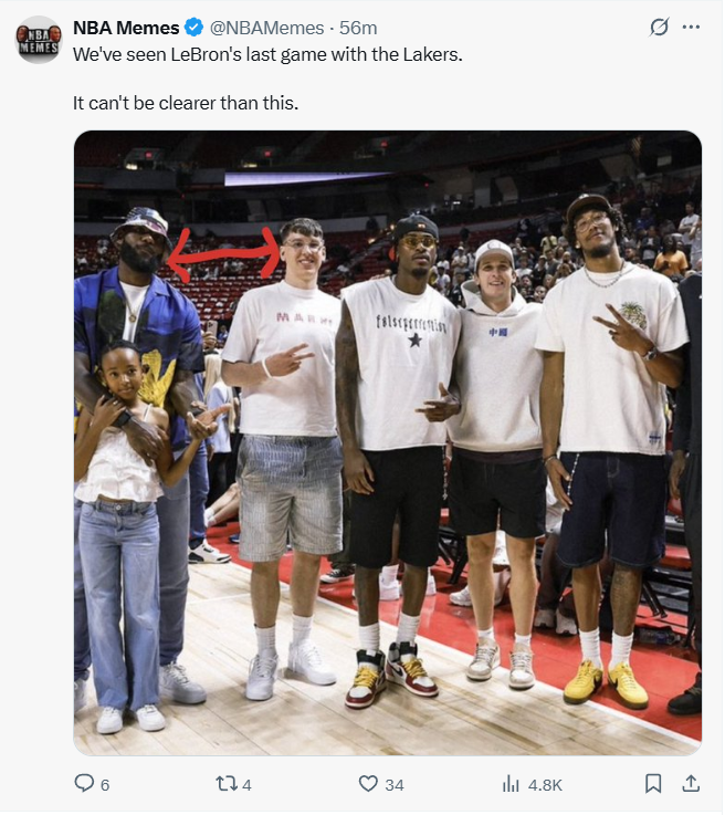 雷速体育7月15日讯 今日,美媒NBA Memes发布湖人球员观战夏季联赛合照并配文:“我们已见证了詹姆斯身披湖人战袍的最后一战,再明显不过了。”